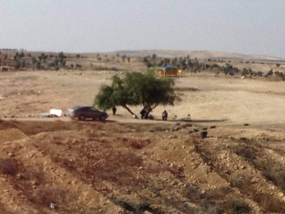 One lone tree - under which they have prepared a place of hospitality for our visit.