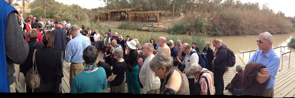Moving on to the River Jordan, traveled by bus, through check points - this is located in the West Bank. Our closing dedication service. Return to Intro