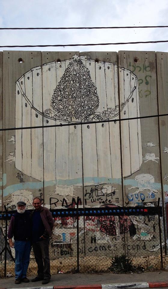 Jim and Omar in front of Omar's favorite drawing - the birth place of Jesus imprisoned by the wall. Return to Intro